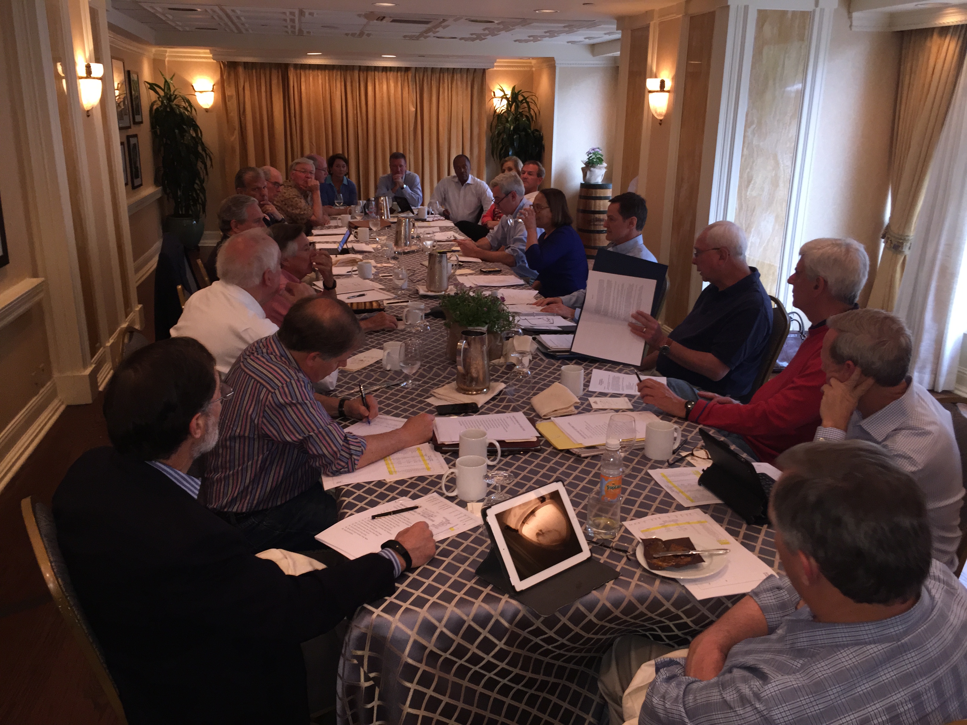 The Board is shown in the photo below during their Saturday morning meeting at the hotel.