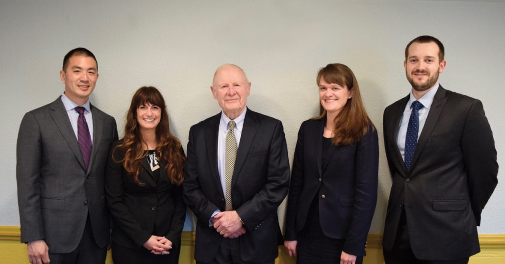 The 2017 Fiske Fellows had an opportunity to meet their benefactor, Bob Fiske, ’55, HLLD ’97, in Ann Arbor in April. Pictured with Fiske are Fellows (left to right) Andrew Sand, ’15, an assistant general counsel in the Office of the General Counsel, Federal Bureau of Investigation; Danielle Angeli, ’16, an assistant U.S. attorney for the Northern District of Ohio, general crimes unit; Sommer Engels, ’16, an honors attorney for the U.S. Department of Justice’s environment and natural resources division, appellate section; and Matt Evans, ‘15, a trial attorney in the Department of Justice’s environment and natural resources division, environmental crimes section. The Fiske Fellowship Program encourages recent graduates to pursue positions as government lawyers. The Fellowship pays both college and law school debt for three years plus a stipend.