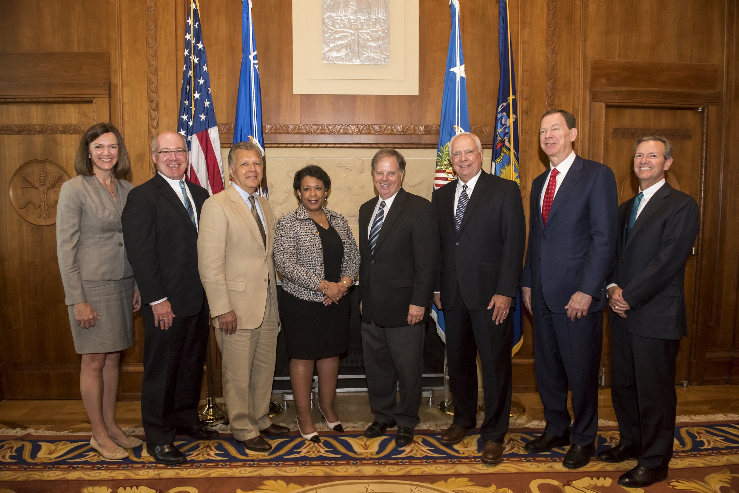 Shown in the photo below, left to right, Karen Hewitt, board member; Secretary Terry Flynn; President Greg Vega; Attorney General Loretta Lynch; Vice President Doug Jones; Executive Director Rich Rossman; Treasurer Paul Coggins; President Elect Bart Daniel.
